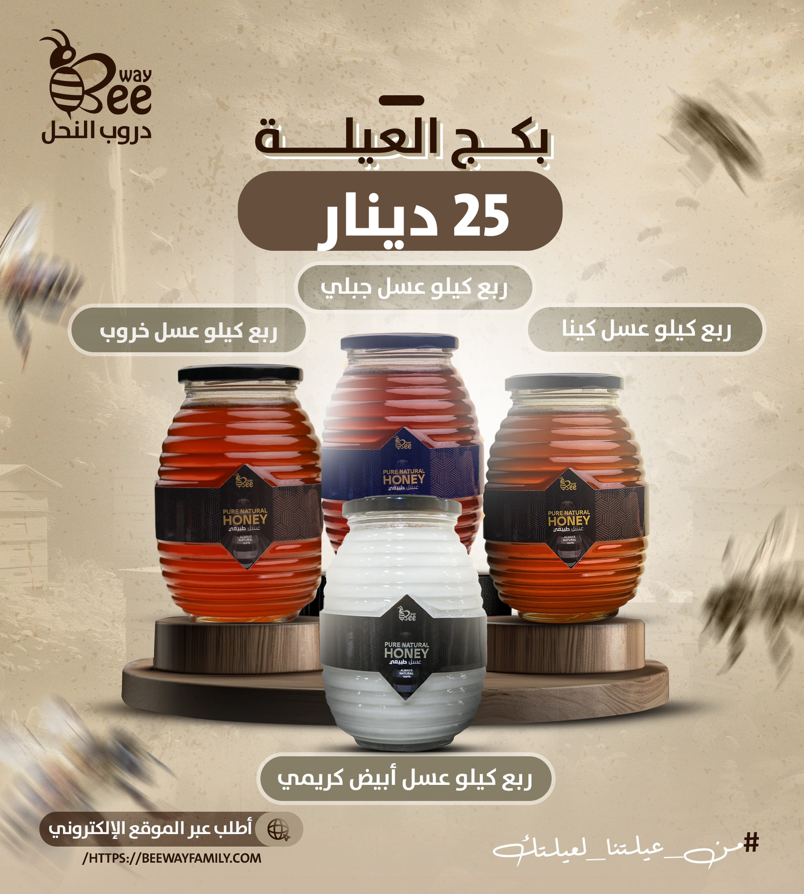 يُقدَّم هذا البكج تجربة متكاملة لمحبي العسل الطبيعي، حيث يضم مجموعة مختارة من أفضل أنواع العسل البلدي التي ننتجها في دروب النحل. يحتوي البكج على عبوات بحجم ربع كيلو من العسل الأبيض الكريمي، عسل الخروب، عسل الحمضيات، والعسل الجبلي متعدد الأزهار، ليمنح العائلة فرصة تذوق نكهات مختلفة وفوائد متنوعة في منتج واحد.